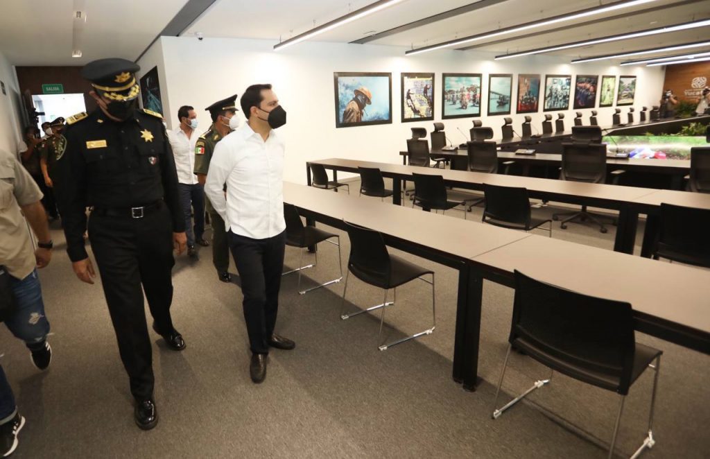 Mérida, Yucatán, 18 de enero de 2022.- El Gobernador Mauricio Vila Dosal inauguró ayer el Centro de Control, Comando, Comunicaciones, Cómputo, Coordinación e Inteligencia (C5i), equipado con tecnología de punta, desde donde se controlará todo el sistema de videovigilancia, el cual pasará de 2,248 cámaras a 6,775 y de 100 arcos carreteros a 219, entre otras acciones, para una mejor coordinación y pronta respuesta de la policía estatal, cuidando así a las familias yucatecas y preservando la seguridad en Yucatán.