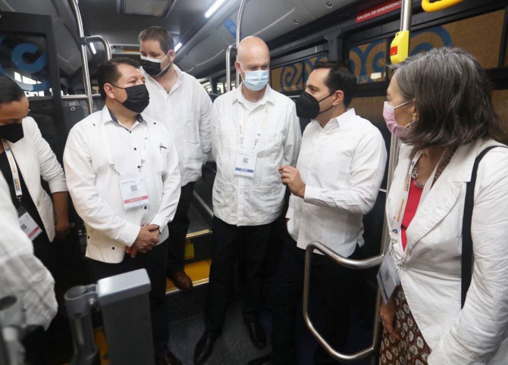 En el estand del Gobierno del Estado de Yucatán- Alianza Smart Latam + Distrito de Movilidad, presentó los beneficios y las ventajas del nuevo Sistema de Transporte Metropolitano “Va y ven”, que actualmente, opera en su Ruta Periférico; de igual manera, el grupo ingresó a las unidades y conoció su operatividad.