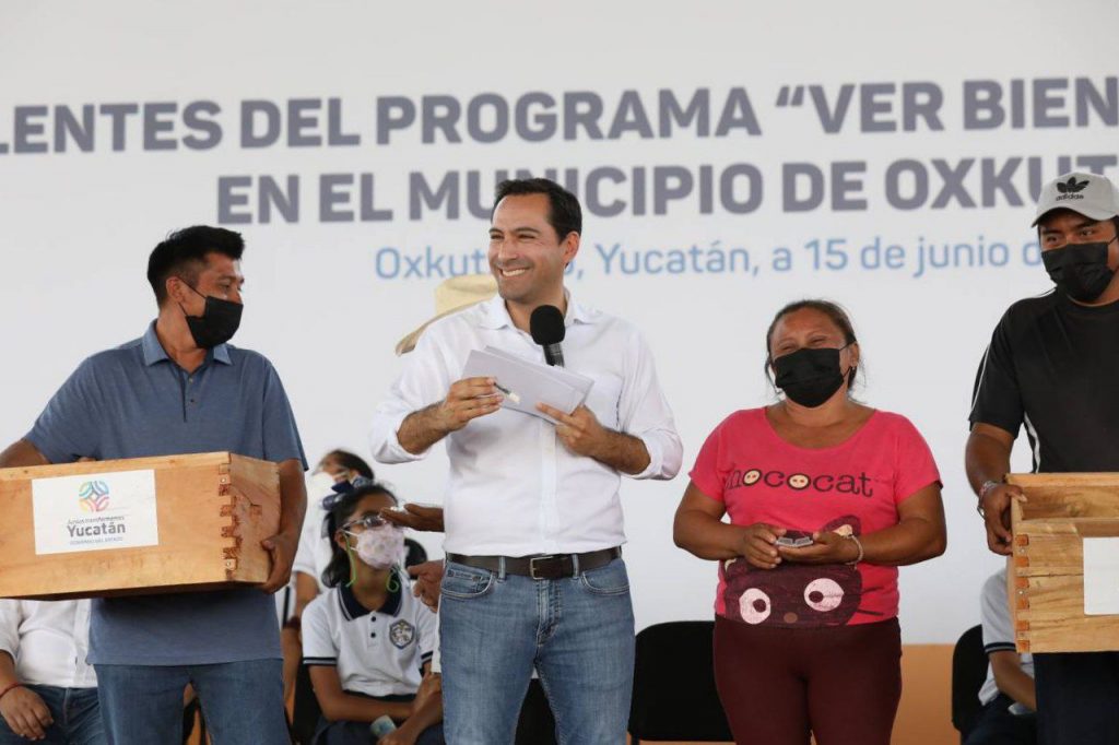 En gira de trabajo por el sur del estado, Vila Dosal, junto con el alcalde anfitrión, Juan José Martín Fragoso, inició la distribución de 1,711 anteojos, para estudiantes de Akil, Chapab, Chumayel, Dzan, Mama, Maní, Mayapán, Muna, Oxkutzcab, Sacalum, Santa Elena, Teabo, Tekax, Tekit, Ticul, Tixméhuac.