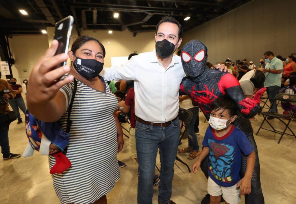 Vila Dosal llegó al módulo de vacunación instalada en el Centro de Convenciones Siglo XXI para supervisar que esta nueva etapa de vacunación en la capital yucateca se realice con normalidad y de manera amena para los infantes, la cual se lleva a cabo hasta el sábado 23 de este mes con el fin de continuar protegiendo la salud de la población, sobre todo, de los más pequeños.