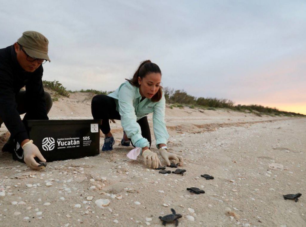 Por instrucciones del Gobernador Mauricio Vila Dosal, la titular de la Secretaría de Desarrollo Sustentable (SDS), Sayda Rodríguez Gómez, encabezó la liberación de los ejemplares que eclosionaron la mañana del 23 de julio, en las playas de la reserva estatal “El Palmar”, ubicada en el puerto de Sisal.