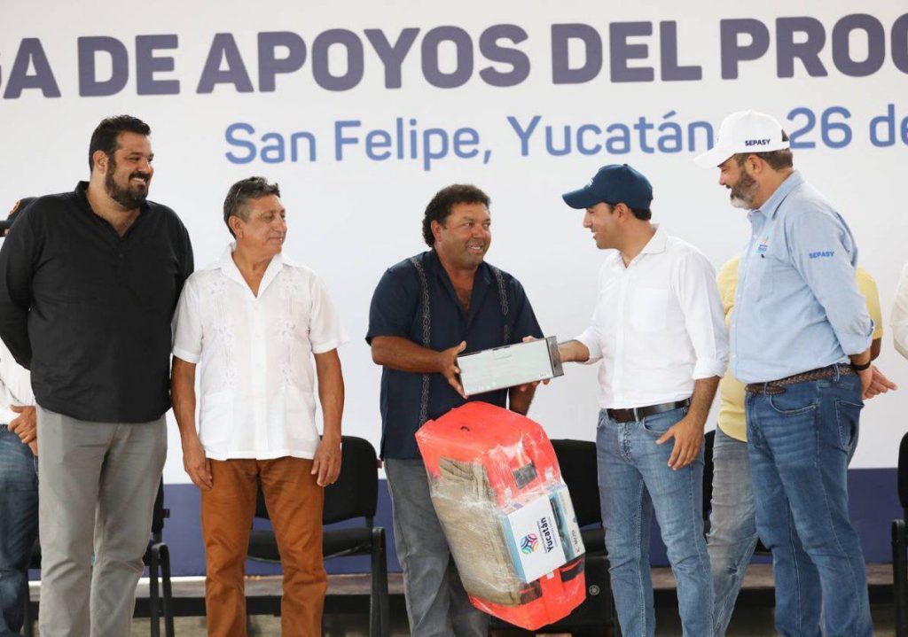 Acompañado del titular de la Secretaría de Pesca y Acuacultura Sustentables (Sepasy), Rafael Combaluzier Medina, Vila Dosal continuó con la distribución de ayudas de Peso a Peso Pesquero y Acuícola, en beneficio de 659 hombres y mujeres del oriente de la entidad, que se dedican a estas actividades, a través de una inversión récord de casi 6 millones de pesos, para fortalecer sus labores.