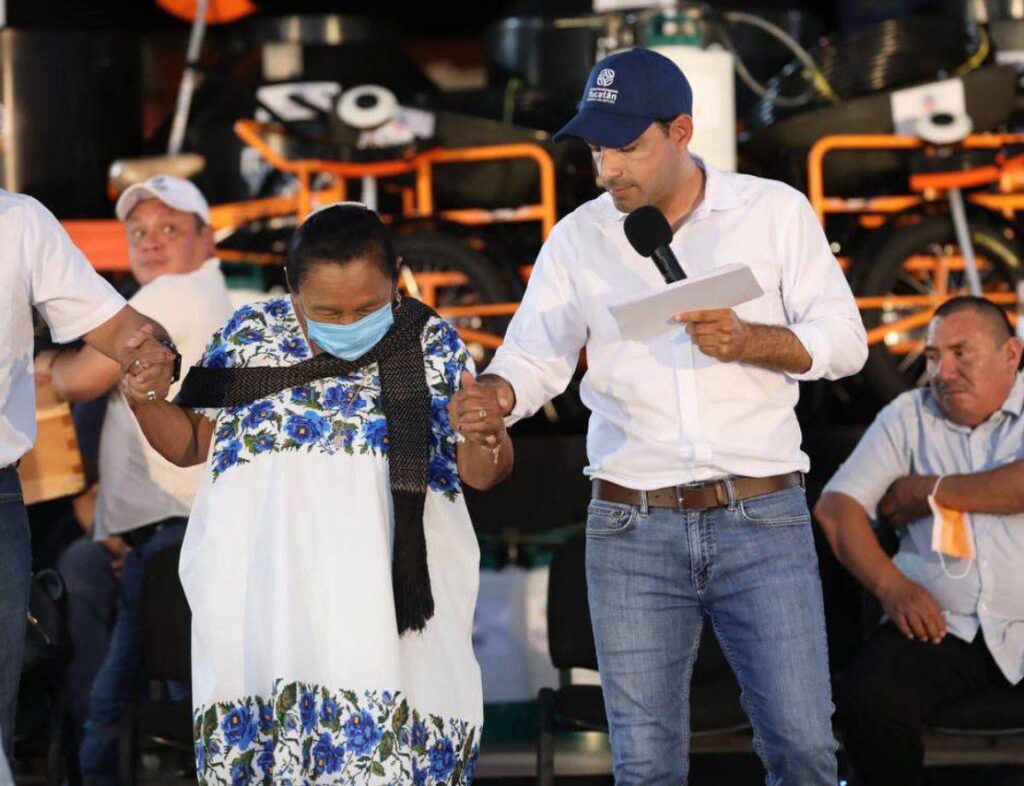 De igual manera, el Gobernador, junto con el alcalde ticuleño, Rafael Montalvo Mata, otorgó a María de los Ángeles Dzul Cach, habitante de esta localidad, que debido a una enfermedad congénita tiene dificultades para moverse, una moto adaptada que facilitará su traslado y el de su familia, haciéndola una persona más independiente, pues igual podrá buscar empleo para contribuir a la economía de su hogar.
