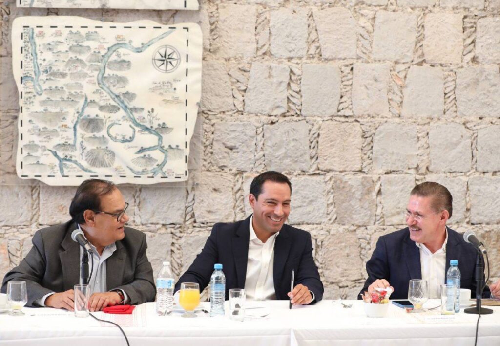 En su encuentro con empresarios, Vila Dosal explicó cómo Yucatán ha logrado mantener su índices de seguridad y preservación de justicia, así como el trabajo que realiza en materia educativa, combate a la violencia contra la mujer, colectividad, economía y generación de empleos, y los proyectos trascendentales que tiene el estado en conjunto con la Federación.