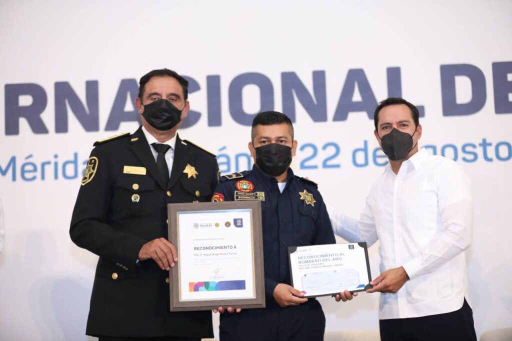 Reconoció al Policía Tercero Miguel Ángel Molina Torres por ser designado “Bombero del año”, quien recibió del Gobierno estatal un estímulo económico de 20,000 pesos, por su heroísmo, valor y capacidad profesional al haber participado de manera rápida y eficaz en servicios relevantes como el rescate de dos personas en el incendio de predio de 2 plantas en la ciudad de Mérida.