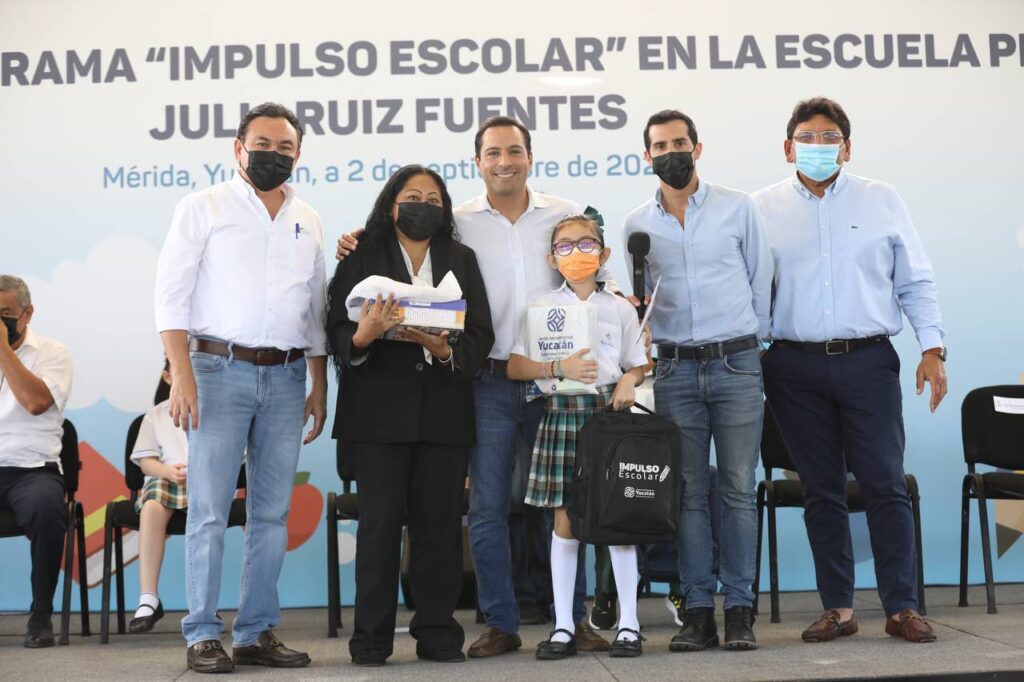 -Vila Dosal estuvo en la escuela primaria federal “Julia Ruiz Fuentes”, ubicada al poniente de Mérida, distribuyendo estos apoyos que representan para las familias yucatecas un ahorro de 2,850 pesos por cada estudiante.