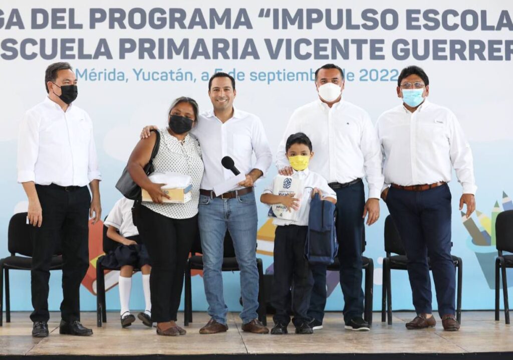 -En la Primaria Federal “Vicente Guerrero”, Vila Dosal entregó estos apoyos que representan para las familias yucatecas un ahorro de 2,850 pesos por cada estudiante.
