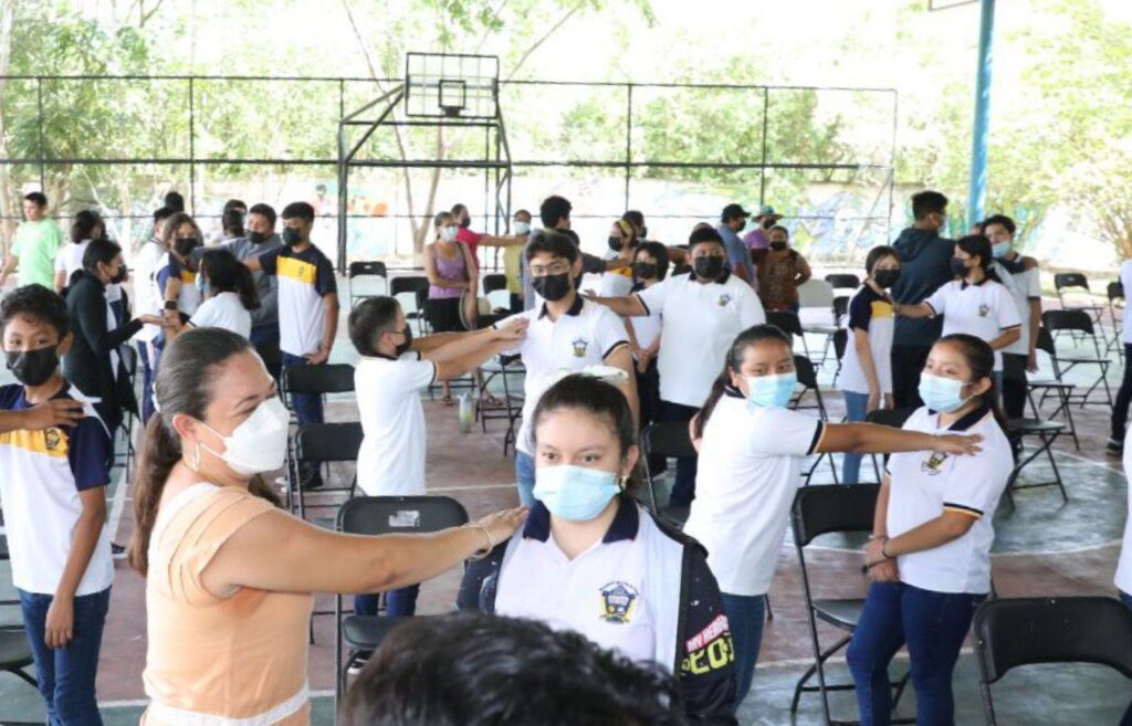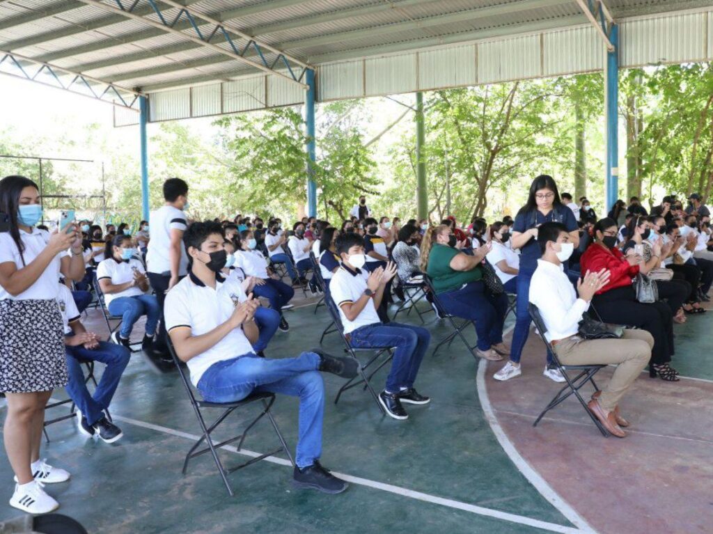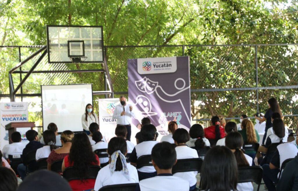 Umán, Yucatán 6 de septiembre de 2022.- Con la participación de estudiantes y autoridades municipales, inició este día en Umán, Kanasín, Progreso y Hunucmá la presentación del Programa Juventudes Yucatán, Planet Youth, que presentó ayer el Gobernador Mauricio Vila Dosal y que, de la mano de adolescentes, padres de familia, docentes y sociedad civil en general, busca prevenir entre niñas, niños y jóvenes malas prácticas, como el consumo de alcohol y el abuso de sustancias nocivas para la salud.