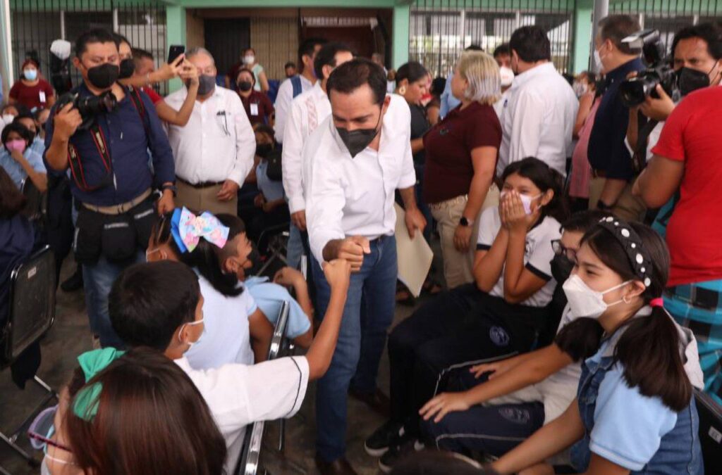 Acompañado de los titulares de la Secretaría de Educación (Segey), Liborio Vidal Aguilar, y de Desarrollo Social (Sedesol), Roger Torres Peniche, Vila Dosal agradeció el gran trabajo que realizaron los docentes durante la contingencia sanitaria “sabemos que muchas veces llevaban tareas, fotocopias y material hasta las casas de los niños y nosotros les agradecemos mucho su esfuerzo y dedicación a su labor”, reconoció.