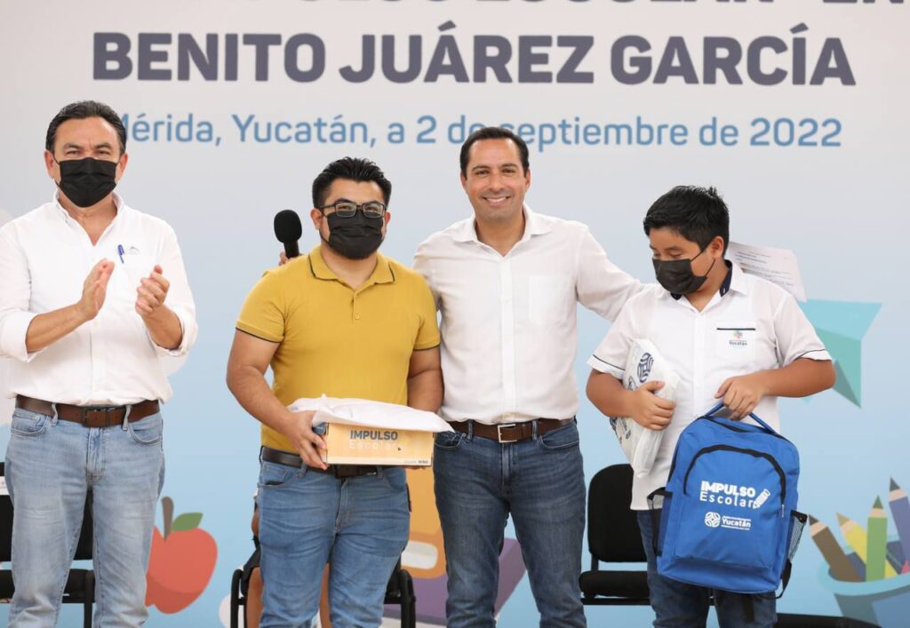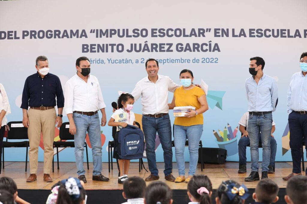 Mérida, Yucatán, 8 de septiembre de 2022.- A través del programa “Impulso Escolar” el Gobernador Mauricio Vila Dosal continúa dotando a los niños y niñas de Yucatán de uniformes y útiles que además de generar un ahorro para los padres de familia de 2,850 pesos por cada estudiante, garantiza a los estudiantes las mismas oportunidades de aprendizaje y desarrollo de sus capacidades.