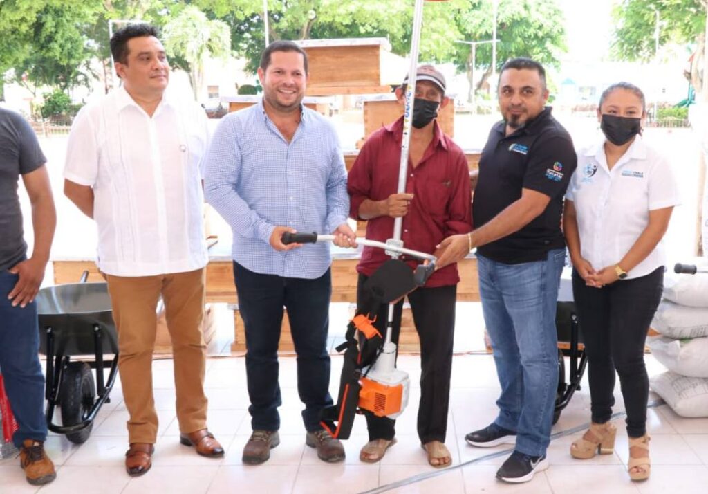 El titular de la Secretaría de Desarrollo Rural (Seder), Jorge Díaz Loeza, supervisó la distribución de insumos, herramientas y equipo de trabajo a productores de Cenotillo, como azúcar, implementos apícolas, motosierras, mangueras para sistemas de riego e hidráulicas, alambres de púas, carretillas, bombas aspersoras, tinacos, triciclos, motobombas y malla borreguera.
