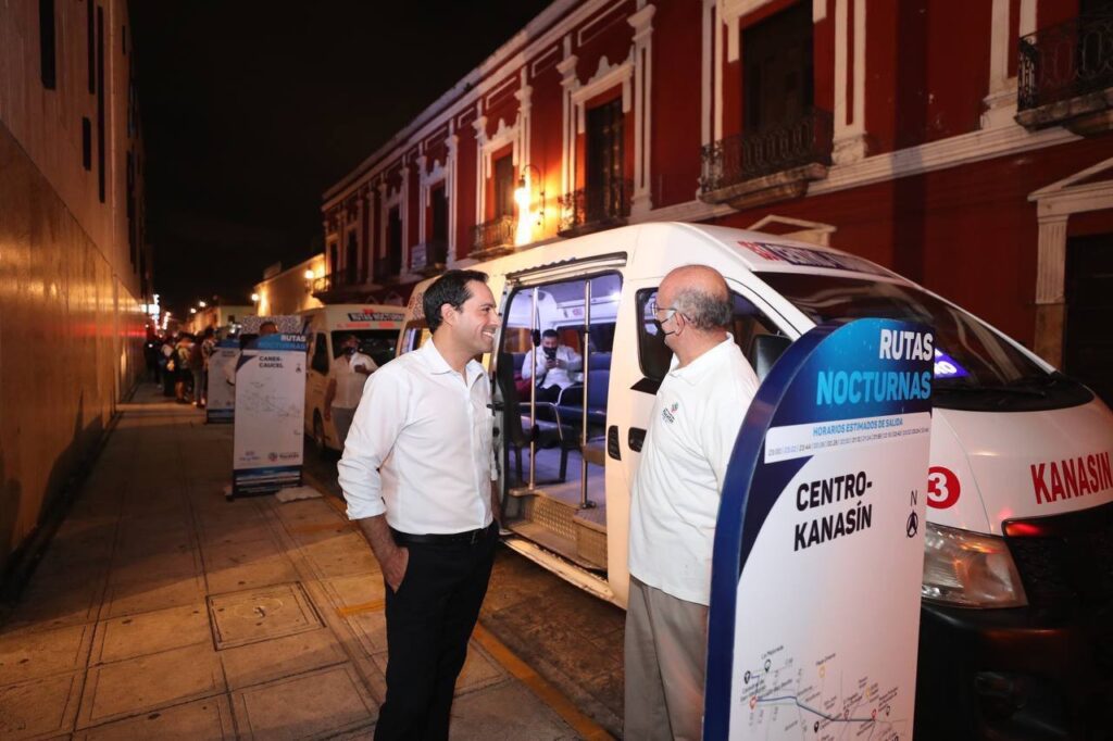 -Vila Dosal constató la operación de este servicio conformado por 13 rutas que operan de miércoles a sábado de 11:00 de la noche a 5:00 de la mañana.