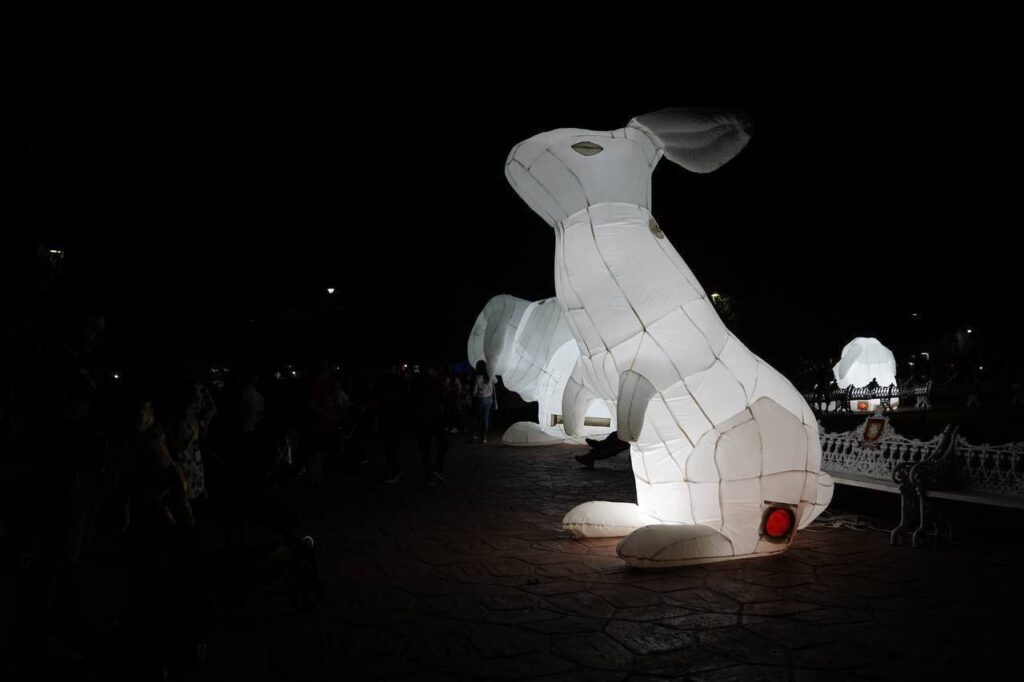 El Filux en Valladolid se hace presente con grandes obras como “Museum of the moon”, una luna que mide 9 metros de diámetro realizada por un artista de Reino Unido con una impresión real 3D del satélite natural, conejos inflables de gran tamaño que le han dado la vuelta al mundo, videomapping y obras de Luz interactivas.