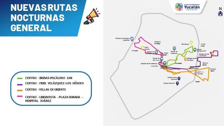 De igual manera, con el aumento 4 rutas nocturnas, las cuales con Centro-Brisas-Polígono 108; Centro-Fidel Velázquez-Los Héroes; Centro-Villas de Oriente; y Centro-Lindavista-Plaza Dorada-Hospital Juárez. Además que, a partir de mediados de 2023, que los 7 días de la semana se tengan rutas nocturnas para ampliar este beneficio.