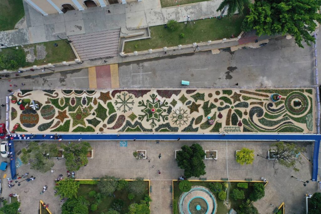 Hunucmá, Yucatán, 8 de diciembre de 2022.- Familias de Hunucmá podrán disfrutar, en esta temporada decembrina, el atractivo Paseo Navideño de las Flores, con figuras como Santa Claus, el hombre de nieve playero, flamencos, el faro, un regalo, una piñata, el boxito, entre otras, formadas por más de 25,000 plantas, entre cempasúchil, petunias, panalillos, ageratos, leucophyllum y dichondra plateada.