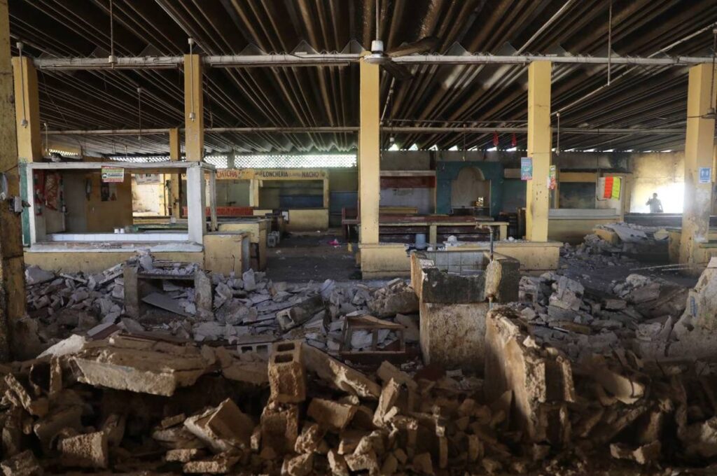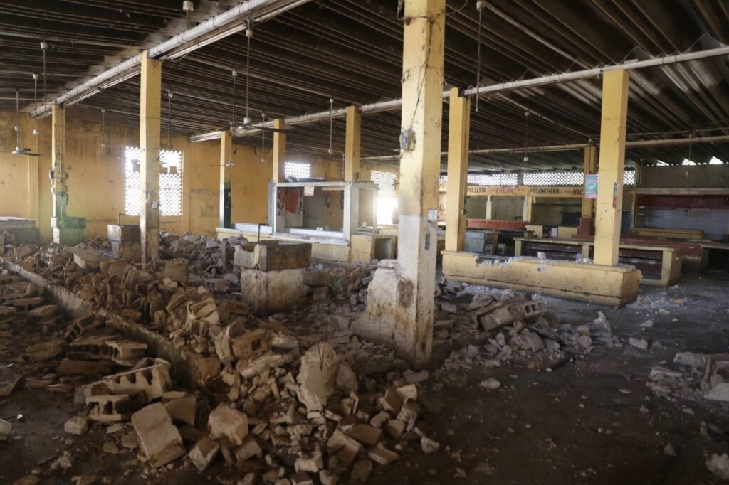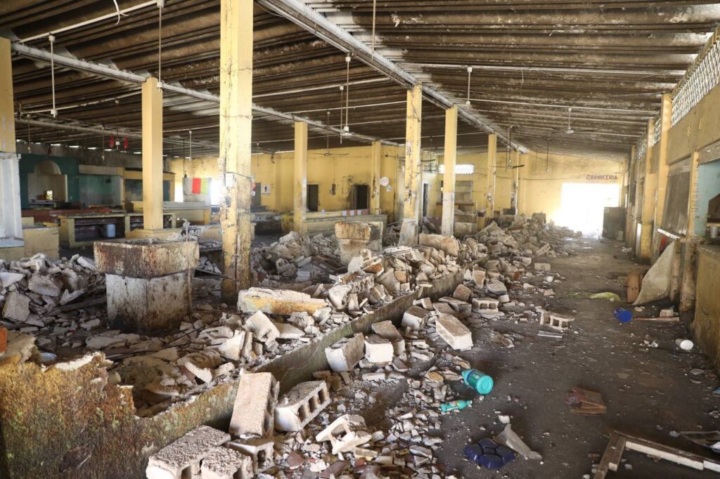 En representación del Gobernador, el titular de la Secretaría de Desarrollo Social (Sedesol), Roger Torres Peniche, encabezó la demolición del antiguo centro de abasto, con lo que se da paso a la edificación del nuevo edificio que tendrá una inversión de 30 millones de pesos y se estima se concluya en un plazo de 8 meses.