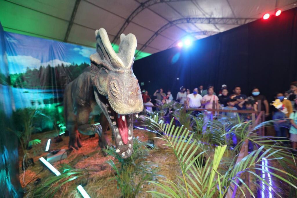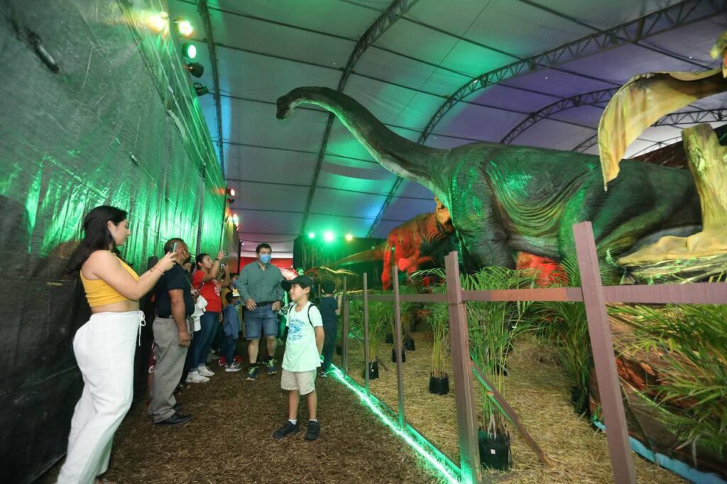 Al Igual que Néstor, cientos de familias de municipios y comunidades del oriente acudieron a Tizimín para conocer la Expo Dinosaurios, que hace un recorrido por las eras Mesozoica y de Hielo, donde se pueden apreciar dinosaurios como el Anquilosaurio, Stegosaurus, Parasaurolophus, Amargasaurio, Iguanodón, Dilofosaurio, Espinosaurio, Pachycephalosaurus, Carnotaurus, Oviraptor, Tiranosaurio Rex, Triceratops, Utahraptor, Brachiosaurus y Pteranodon.