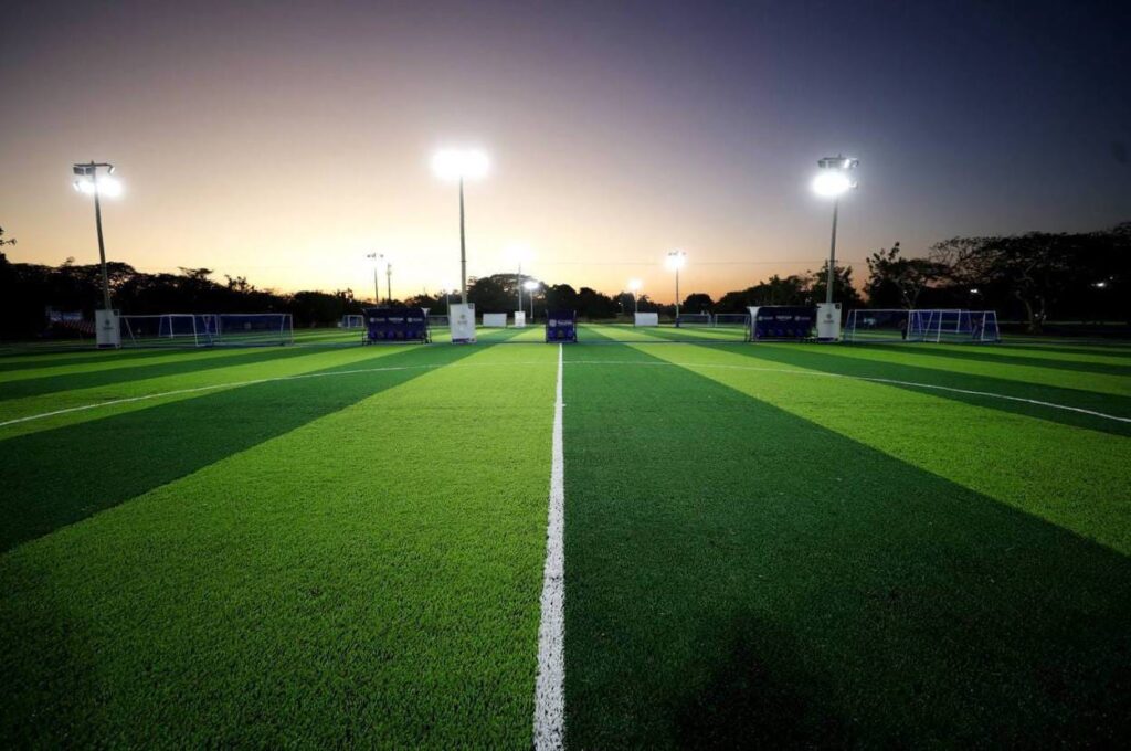 Se les dotó de iluminación LED para juegos y entrenamientos tanto de día como de noche, y un sistema de riego automático para enfriamiento del pasto sintético y riego del pasto natural, que nos ayuda a mantener el césped en óptimas condiciones.