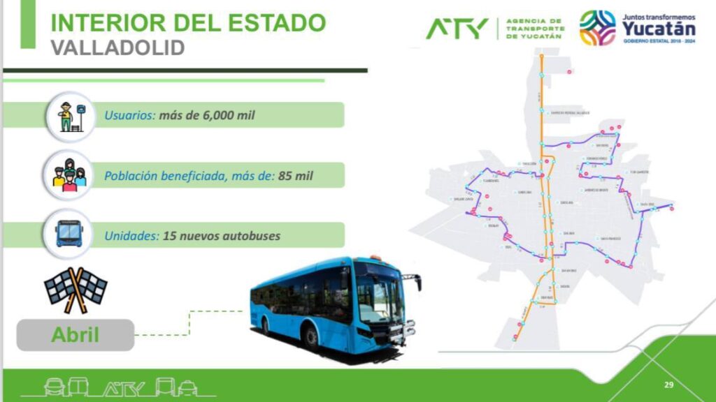 Por lo que toca a las nuevas rutas que entrarán en vigor en abril próximo en Tekax, serán 15 nuevos autobuses eléctricos que beneficiarán a más de 45 mil habitantes de esta zona.