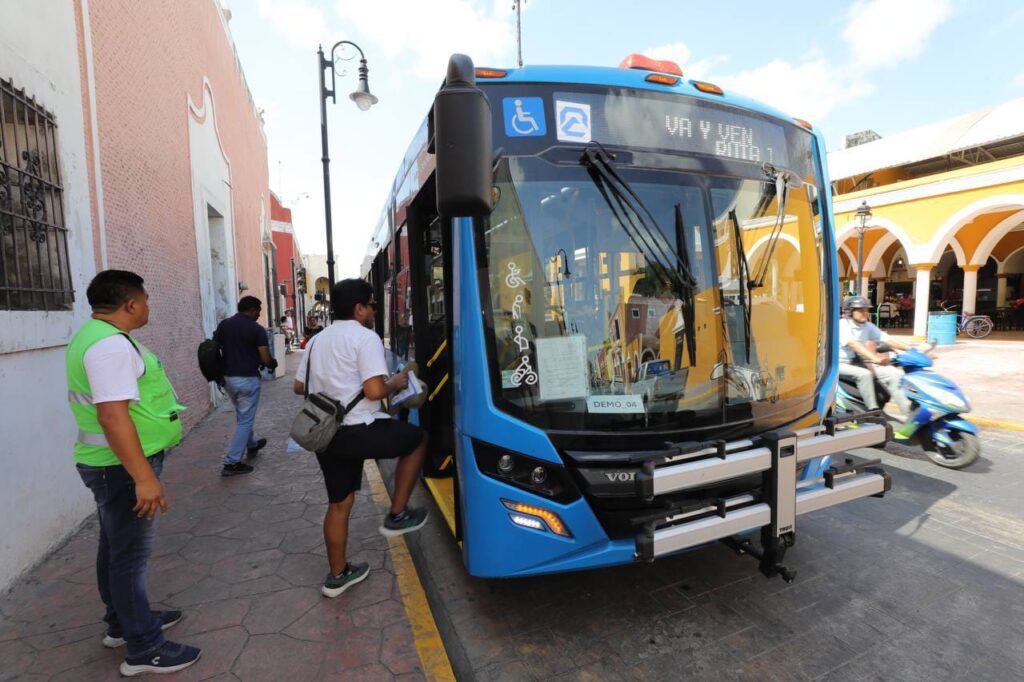 Valladolid, Yucatán, 11 de mayo de 2024.- La transformación de la movilidad llega al oriente del estado, con el inicio de la ruta transversal del sistema Va y Ven en el municipio de Valladolid, donde ahora los usuarios pueden acceder a viajes más cómodos y ágiles a bordo de modernas unidades, que vienen a ofrecer un servicio de transporte público a la altura que merecen los yucatecos