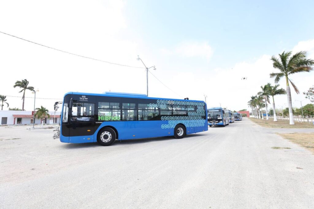 Se trata de unidades Yutong híbridas que fueron trasladadas desde Mérida esta mañana, las cuales combinan un sistema de propulsión diésel-eléctrico, con capacidad para 70 personas, 30 asientos, además son amigables con el medio ambiente, ya que producen 400% menos de emisiones de CO2 al año, lo que significa la siembra de 2,845 árboles.